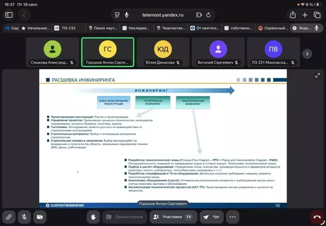 Спикером мероприятия выступил кандидат технических наук Антон Сергеевич Горшков, который поделился практическим опытом применения цифровых технологий в инженерной деятельности.В семинаре приняли участие студенты и преподаватели кафедры. Активно обсуждались современные подходы к цифровизации, перспективы развития инжиниринга и практические примеры внедрения технологий.Несомненный результат семинара - расширение профессионального кругозора студентов, укрепление связи с практикой, открытие новых возможностей для будущих инженеров