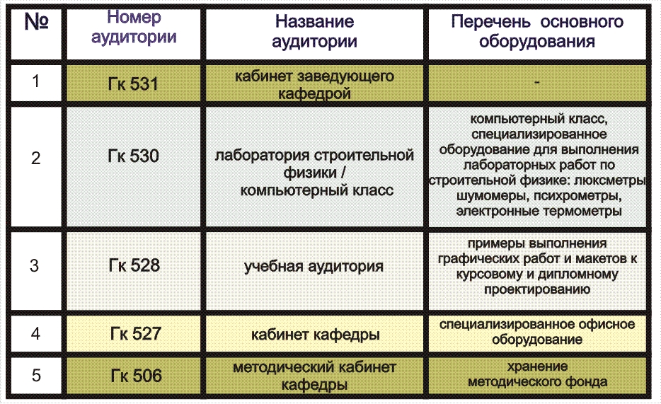 За кафедрой «Архитектурные конструкции» закреплен ряд помещений.