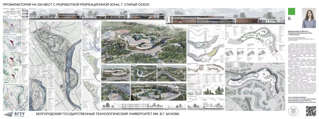 - Работа бакалавра Гончар Ксении, руководитель – зав. кафедрой АиГ, доцент Ярмош Т.С.,: «Профилакторий на 200 мест с разработкой рекреационной зоны, г. Старый Оскол» удостоена дипломом 1 степени МООСАО, дипломом Союза московских архитекторов.