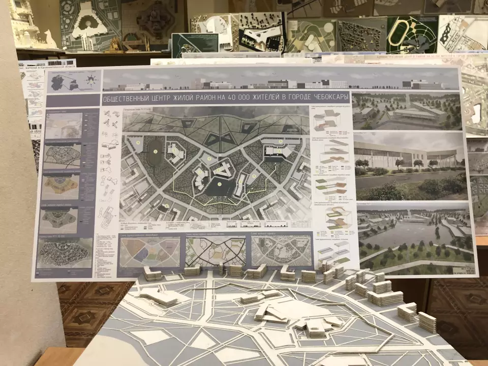 Студенты четвертого курса выполнили курсовой проект "Жилой район на 40000 жителей", в рамках выполнения которого разработали функционально-пространственную структуру района, ознакомились с нормативной литературой, а так же поработали архитектурное решение центра жилого района.