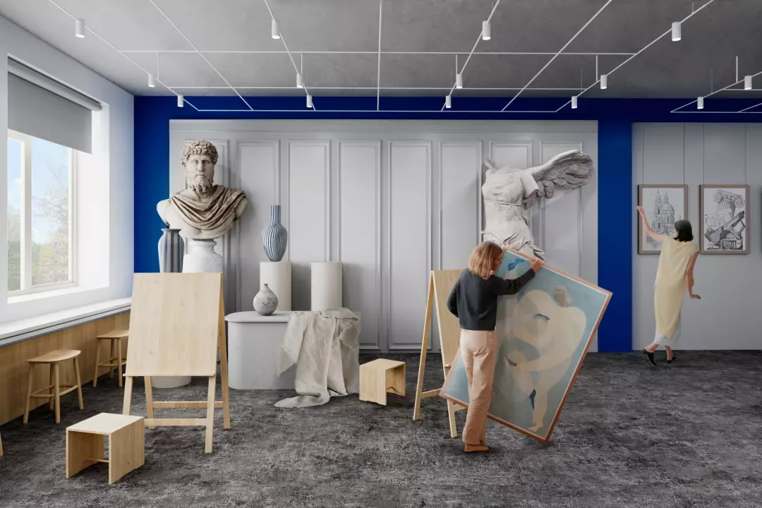 Для обеспечения благоприятных условий для получения навыков скульптурного моделирования предназначена отдельная скульптурная мастерская.