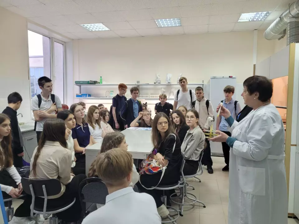 24 ноября 2025 на кафедре экобиотехнологии БГТУ им. В.Г. Шухова была проведена экскурсия по лабораториям для обучающихся 8 «Л» класса МБОУ СОШ №50, где школьникам рассказали о методах и способах биотехнологических процессов.