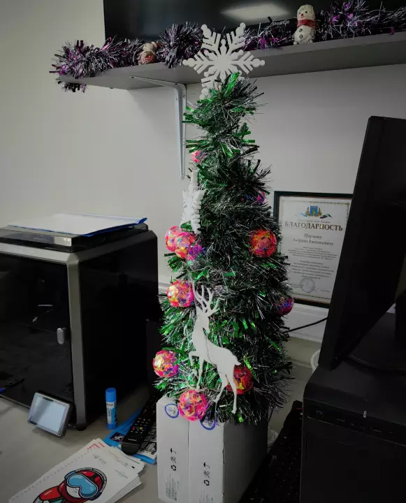 Студенты четвёртого курса бакалавриата кафедры экспертизы и управления недвижимостью используют 3D-принтер не только для профессиональных задач, но и для придания рабочим пространствам атмосферы праздника.