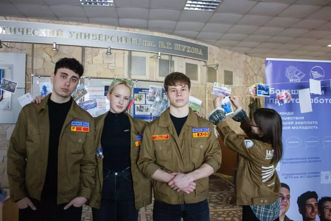 Представители студенческих стройотрядов в фойе аудиторного корпуса устроили традиционную фотосушку, разместив самые памятные мгновения трудовых будней бойцов движения на фотокарточках.