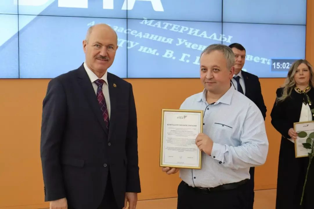 Доценту кафедры ЭУН Александру Валериевичу Долженко вручили благодарственные письма за плодотворное сотрудничество и проведение образовательных интенсивов по управлению беспилотными системами для учеников инженерных и IT-классов.