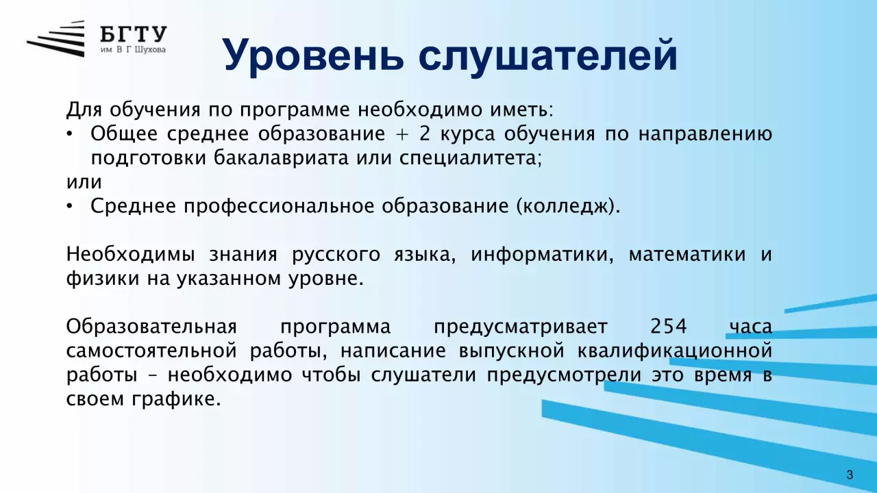 Форма обучения – очно-заочная, начинать можно со второго курса.