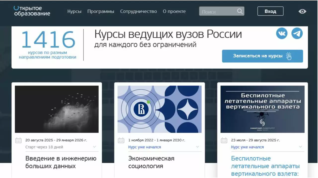 «Открытое образование» - современная образовательная платформа, предлагающая онлайн-курсы по базовым дисциплинам, изучаемым в российских университетах. Платформа создана Ассоциацией "Национальная платформа открытого образования", учрежденной ведущими университетами - МГУ имени М.В. Ломоносова, СПбПУ, СПбГУ, НИТУ «МИСиС», НИУ ВШЭ, МФТИ, УрФУ и Университет ИТМО.