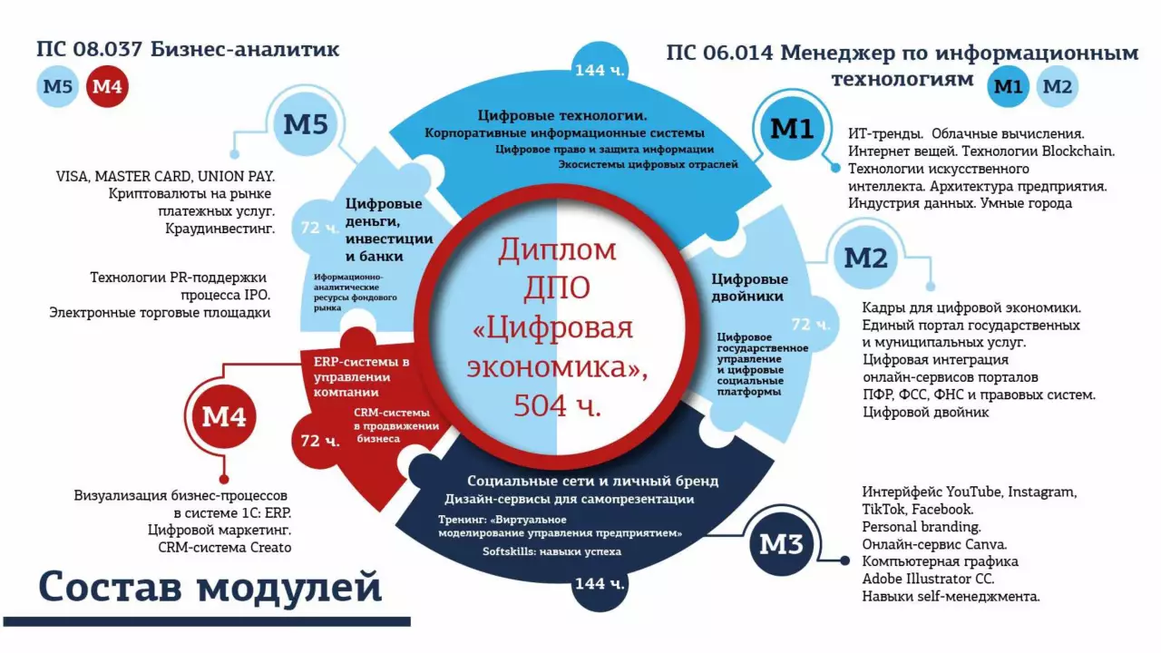 У вас есть возможность получения дополнительного образования (бесплатное) в рамках проекта «Цифровая кафедра»: студент получает дополнительную квалификацию по ИТ-профилю.