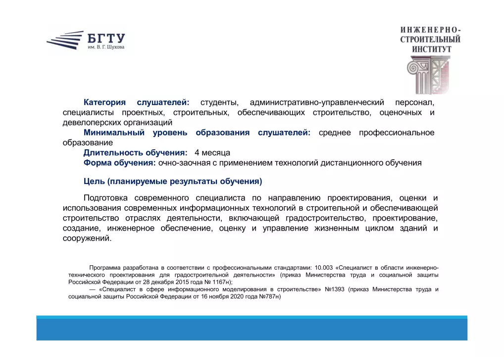 Целевая аудитория - лица, профессионально занимающиеся управлением проектами и строительными процессами и имеющие практический подход к использованию современных инструментов и методов информационного моделирования в строительной отрасли.