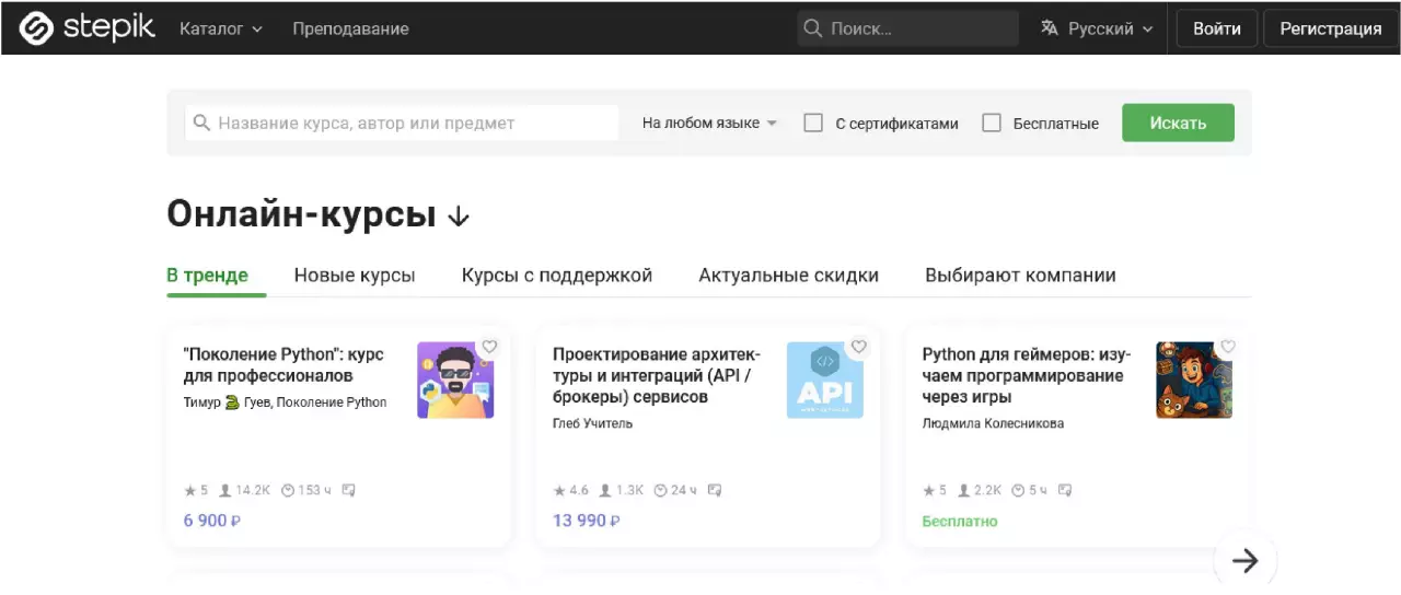 Stepik — это образовательная платформа и конструктор онлайн-курсов, где любой желающий может запустить собственный курс. Некоторые курсы адаптивные: то есть алгоритмы подстраивают уровень сложности под конкретного пользователя.