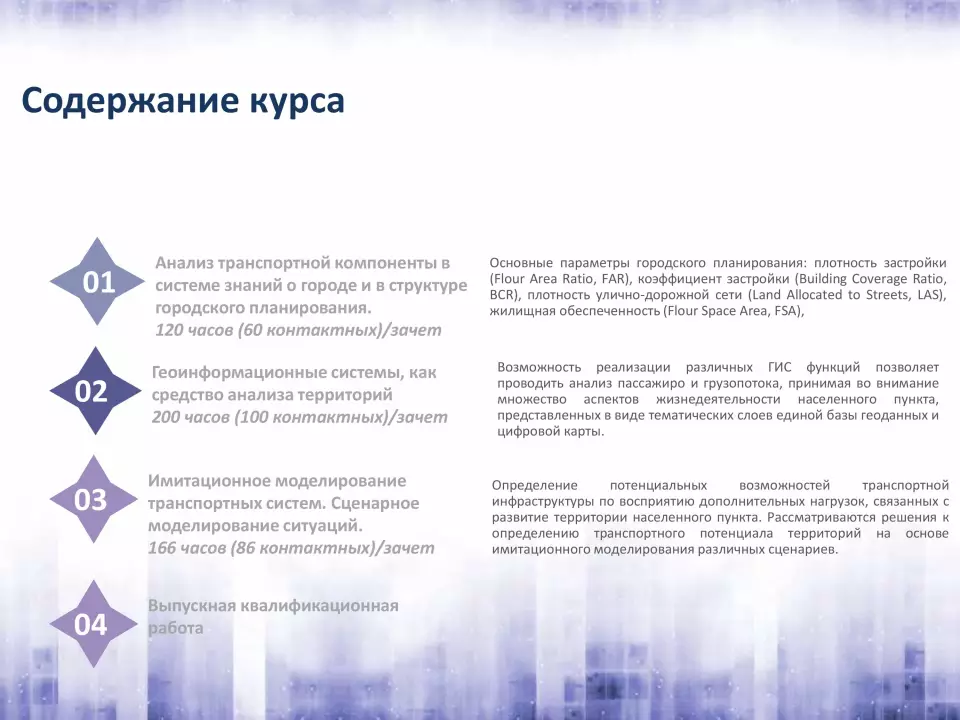 Краткая аннотация курса - основы ГИС. Источники данных для ГИС (Яндекс Карты, Google Maps и др.). Пространственная привязка данных в ГИС. Особенности привязки снимков при решении задач дешифрирования. Методы визуализации данных и результатов анализа. Создание тематических карт (работа в MapInfo, QGIS и отечественном ПО).