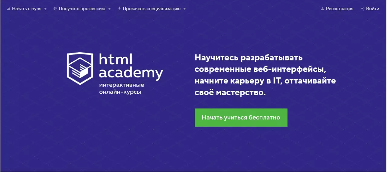 «Академия» — это место, с которого можно начать знакомство с созданием сайтов и изучить HTML, CSS и JavaScript. Во время обучения студенты получают теорию в текстовом формате и решают огромное количество интерактивных задач — около 100 доступно бесплатно.