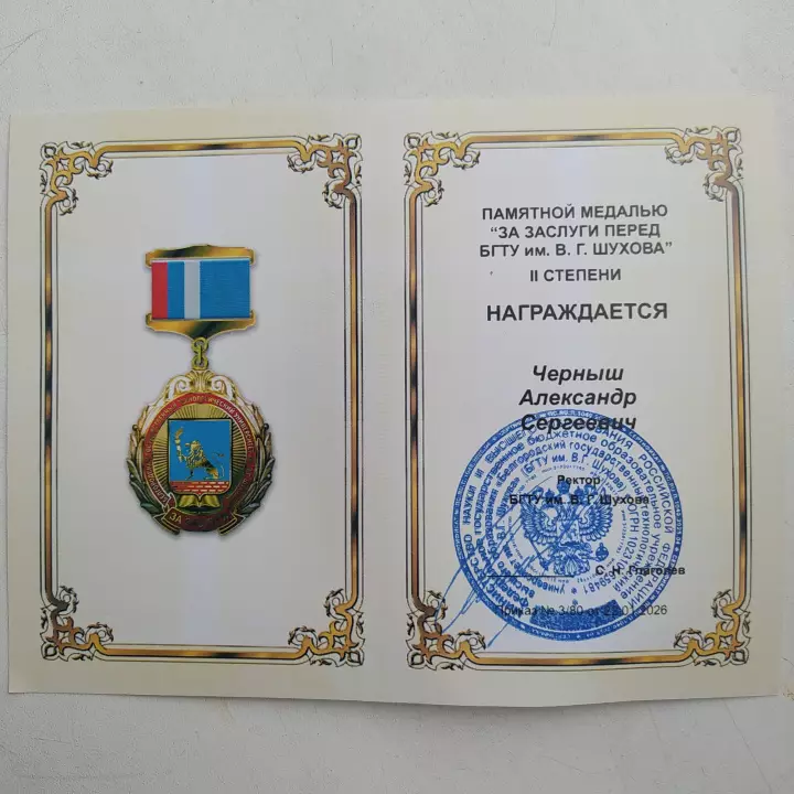 Медаль II степени вручили доценту, канд. техн. наук Чернышу Александру Сергеевичу, проработавшему в БГТУ им. В.Г. Шухова более 40 лет и медаль III степени - доценту, канд. техн. наук Оноприенко Наталье Николаевне, проработавшей в университете более 20 лет.