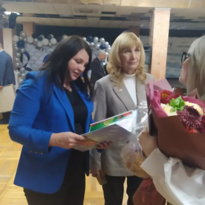 С поздравлением выступили Владимирова О.В., Голиков Г.Г, Александрова Л.В., Перцев В.В., Гольцов А.Б., Наумов А.Е., Кочерженко В.В., Рыбалов А.И., Харченко Т.В., Андреева Е.Н., Черныш А.С.