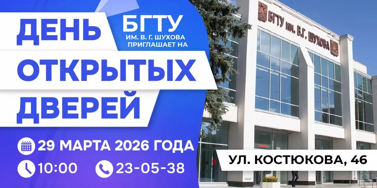 Приглашаем учеников и их родителей на ДЕНЬ ОТКРЫТЫХ ДВЕРЕЙ БГТУ им. В.Г. Шухова, который пройдет в Студенческом дворце культуры университета в ВОСКРЕСЕНЬЕ 29 МАРТА В 10:00 ч.!