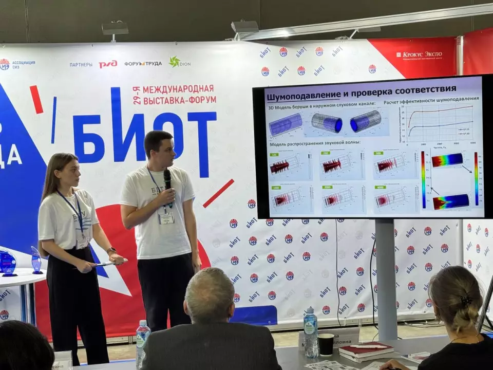 Команда ProSafe (Карченков Тимофей, Гаврилива Полина - студенты гр. ТБ-221, Самбольская Карина и Кравцов Артем - студенты гр. НИ-251) представила свой проект, посвященный применению разработке средств индивидуальной защиты органов слуха с возможностью избирательного подавления шума и пропусканием речевого сигнала.