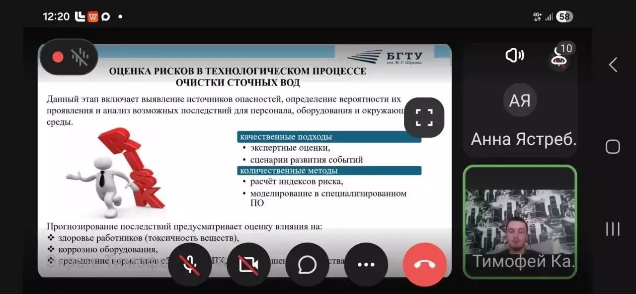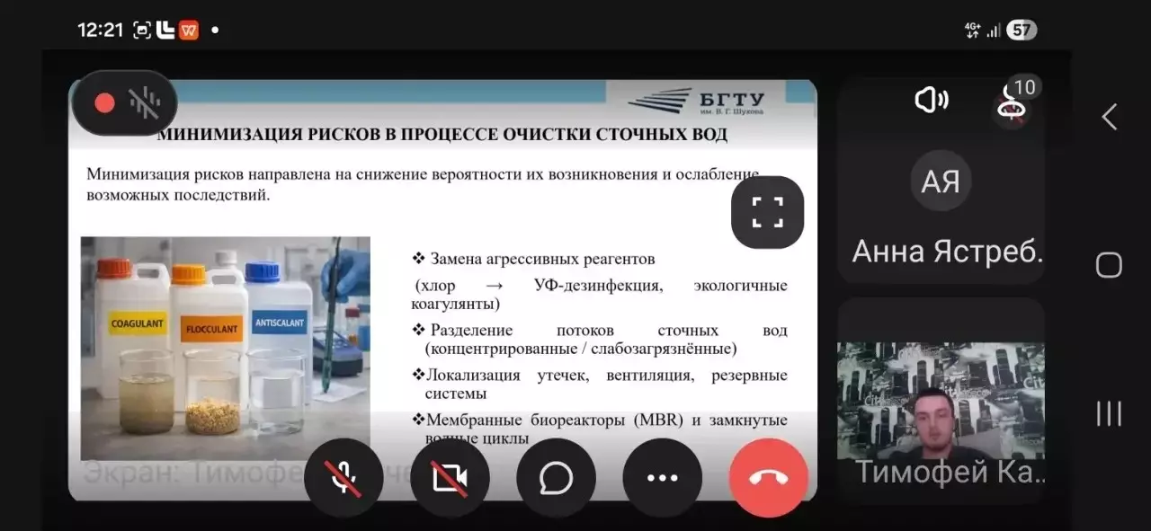 26 марта Тимофей представил доклад на тему «Обеспечение безопасности технологического процесса очистки сточных вод при производстве упаковки» под научным руководством к. т. н., доцента Ястребинской Анны Викторовны.