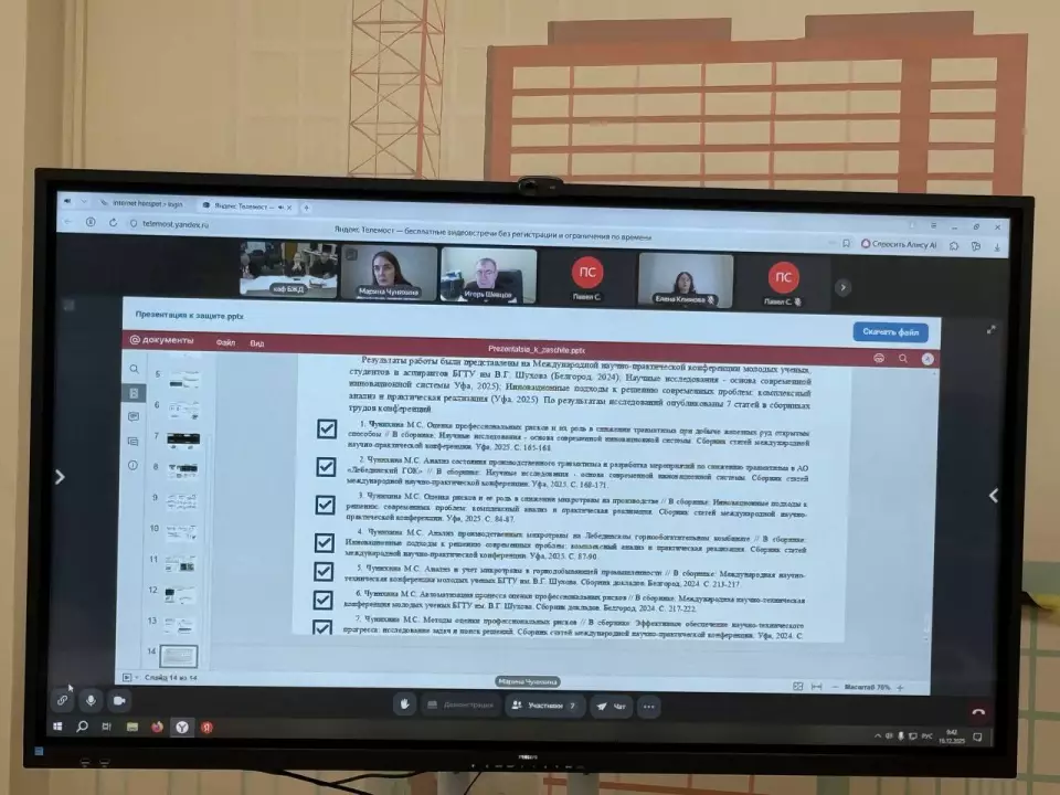 В ходе защиты каждый участник представил результаты своего научного исследования. Студенты подробно раскрыли суть проведённой работы, включая анализ актуальной проблемы в сфере техносферной безопасности, выбранную методологию, практическую часть с расчётами и экспериментами, а также сформулированные выводы и рекомендации по внедрению полученных результатов.
