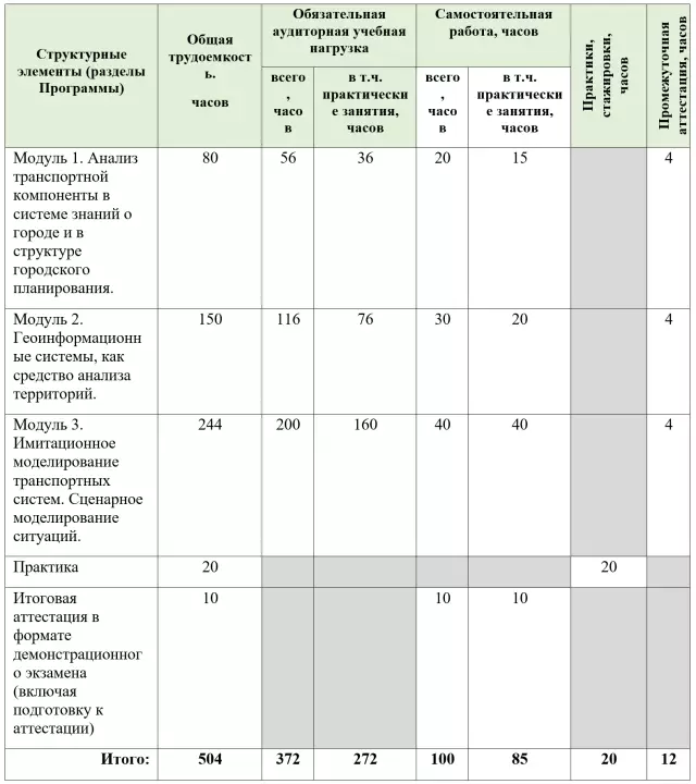 Модули программы: состав и структура интеллектуальных транспортных систем; разработка цифровых моделей транспортных систем с использованием искусственного интеллекта на стадии сбора исходных данных.