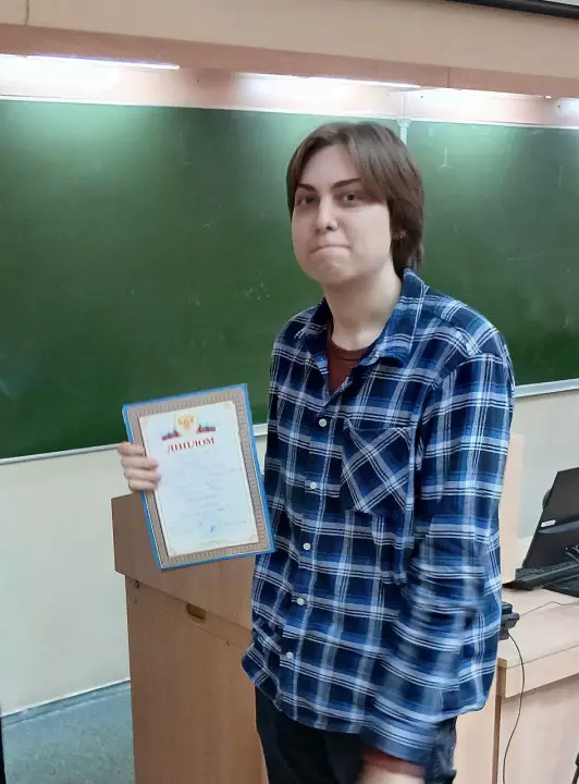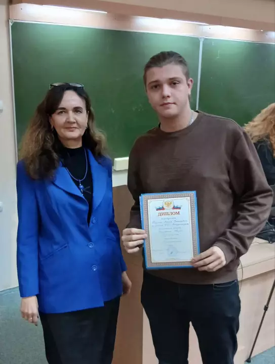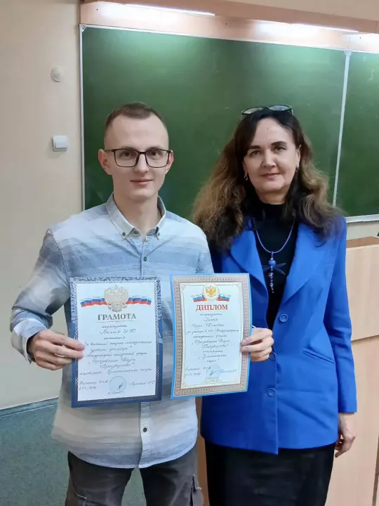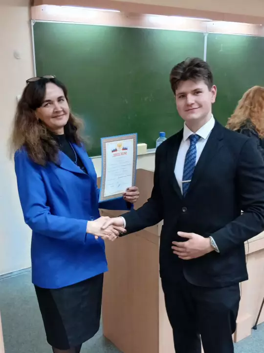 Хапугин Александр, тема доклада: «Перспективы использования искусственного интеллекта в сфере бухгалтерского учета», науч. рук.: ст. преп. Шевченко М. В., номинация: «За практическую значимость» (гр.ЭБ-231).