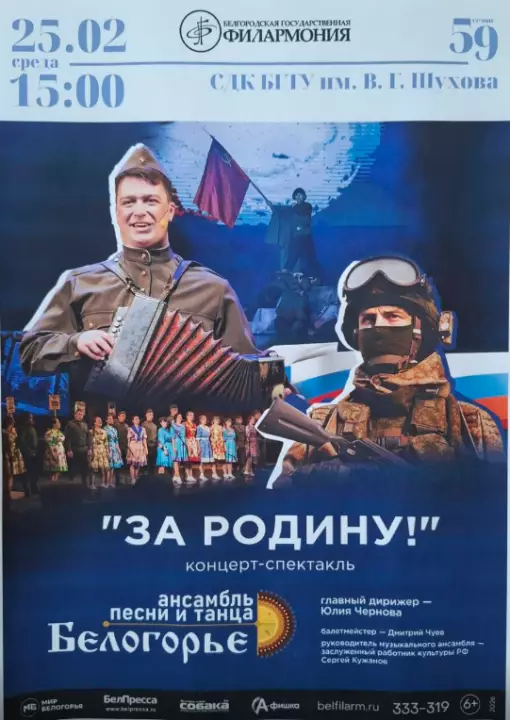 25.02.2026 г. состоится концерт-спектакль "За Родину!" в студенческом дворце культуры БГТУ им. В.Г. Шухова