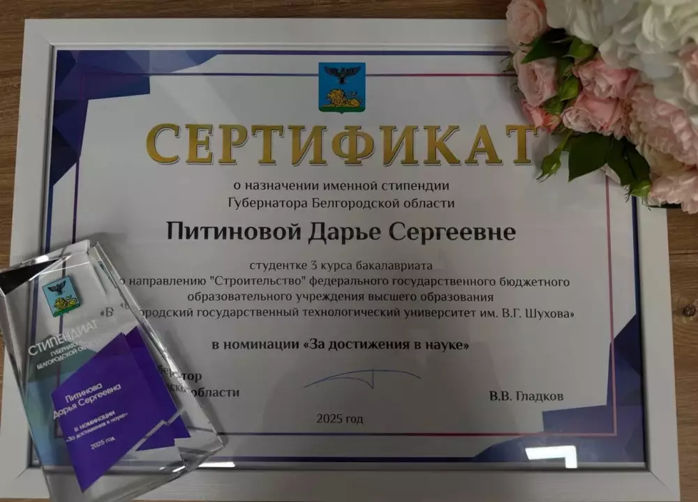20 ноября состоялась торжественная церемония награждения именными стипендиями губернатора Белгородской области в номинации «За достижения в науке». В числе награжденных стали: