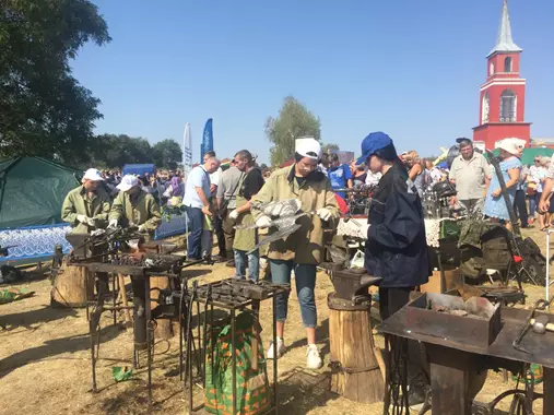 Там они представили свои заранее подготовленные кованые работы, выполненные на тему "Блины и космос", а также ознакомились с работами других участников фестиваля.