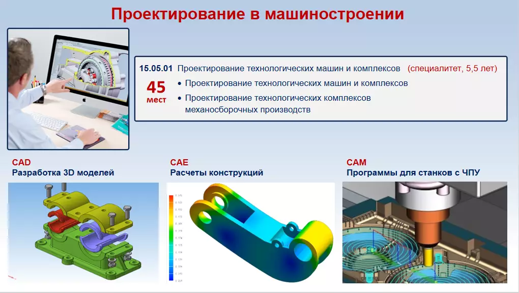 Студенты получают специальность инженер–конструктор. Направление специализируется на цифровом инжиниринге технологических машин и комплексов предприятий промышленности строительных материалов.