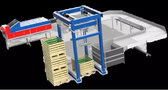 комплекс рассчитан на сортировку сферического продукта по диаметру и весу, и обеспечивает производительность до 10 тонн в час;