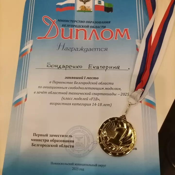 🥇Студентка группы БЛк-251 Бондаренко Катя заняла первое место по классу F1B - свободнолетающая резиномоторная модель. Поздравляем 🎉 и желаем новых успехов!