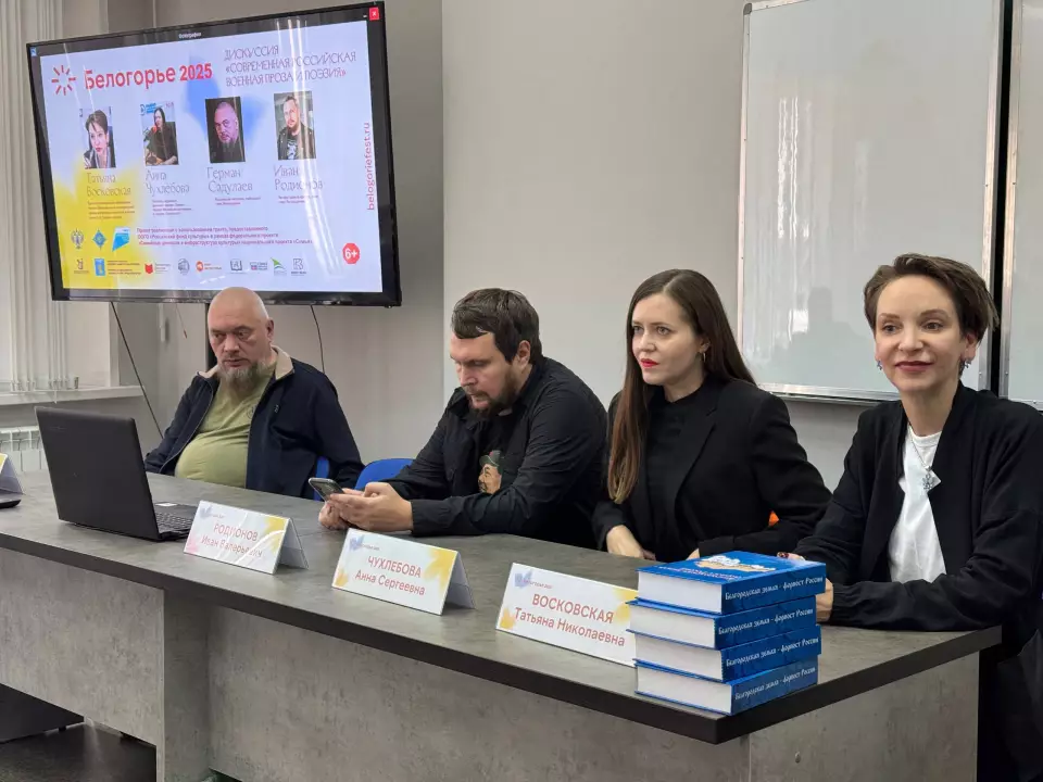 18 сентября 2025 года в рамках регионального книжного фестиваля «Белогорье» на базе военного учебного центра имени Героя Советского Союза генерала армии Н.Ф. Ватутина при БГТУ им. В.Г. Шухова состоялась дискуссия «Современная российская военная проза и поэзия» с участниками литературно-просветительского проекта «Большая страна – Большая книга»: Татьяной Восковской, директором Национальной литературной премии «Большая книга» и Литературной премии «Лицей» имени Александра Пушкина для молодых прозаиков и поэтов (г. Москва); Германом Садулаевым, писателем, членом Литературной академии премии «Большая книга» (г. Санкт-Петербург); Анной Чухлебовой, прозаиком, журналистом, финалистом премии «Лицей»; Иваном Родионовым, литературным критиком, членом Литературной академии премии «Большая книга» (г. Камышин, Волгоградская область).