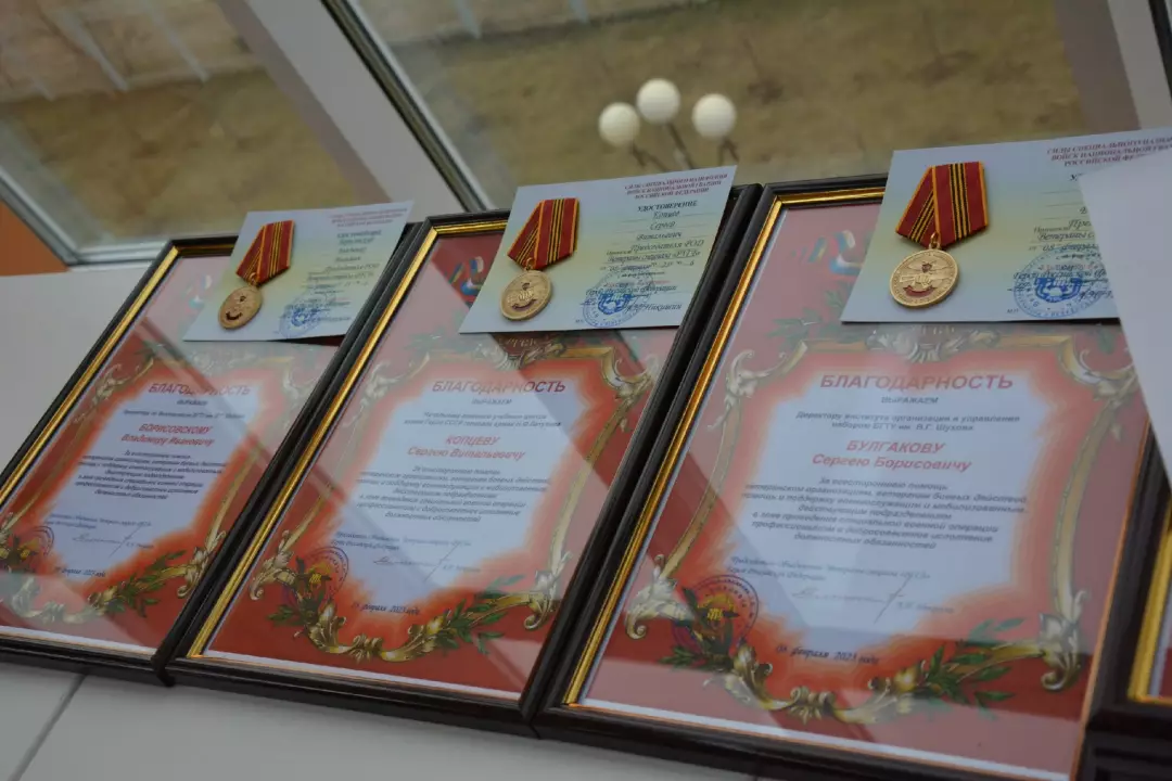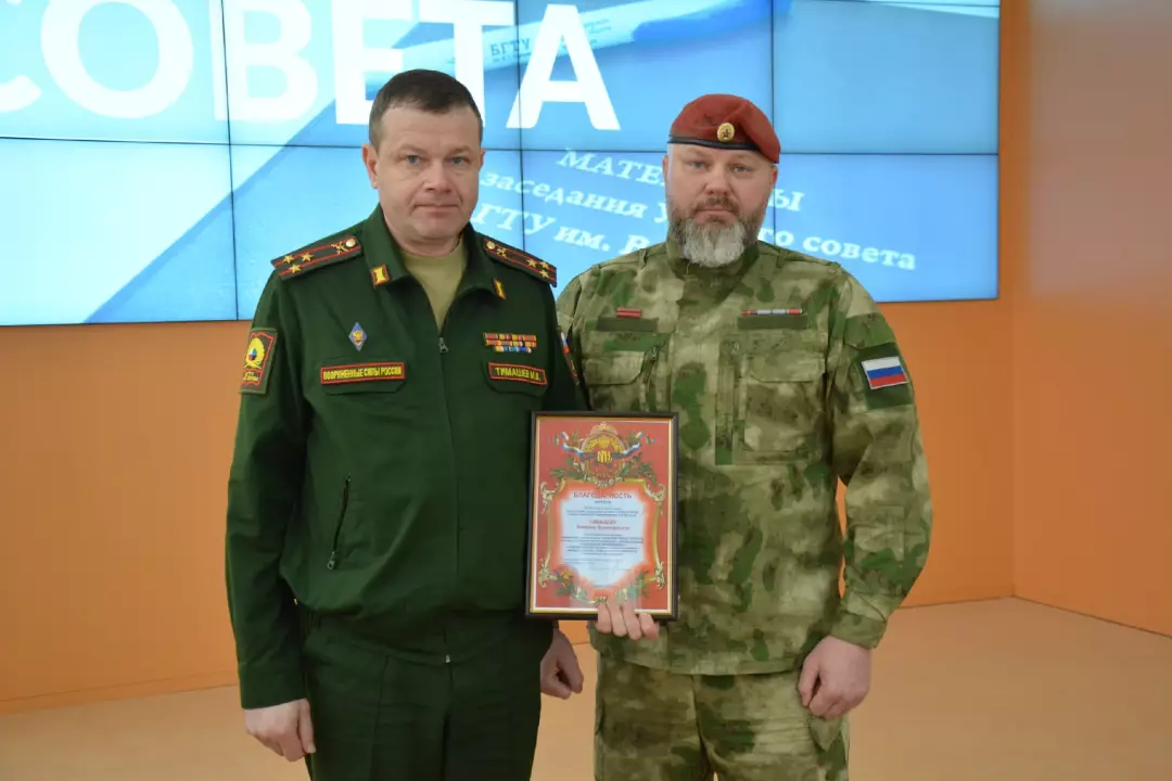 29 марта 2023 года на заседании ученого совета БГТУ им. В.Г. Шухова в торжественной обстановке, за всестороннюю помощь ветеранским организациям, ветеранам боевых действий, помощь и поддержку военнослужащим и мобилизированным, действующим подразделениям в зоне проведения специальной военной операции, профессионализм и добросовестное исполнение обязанностей, были награждены начальник военного учебного центра полковник Копцев С.В. и начальник учебной части - заместитель начальника военного учебного центра полковник Тимашев М.В.