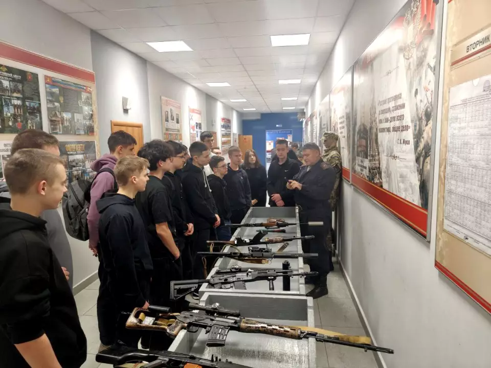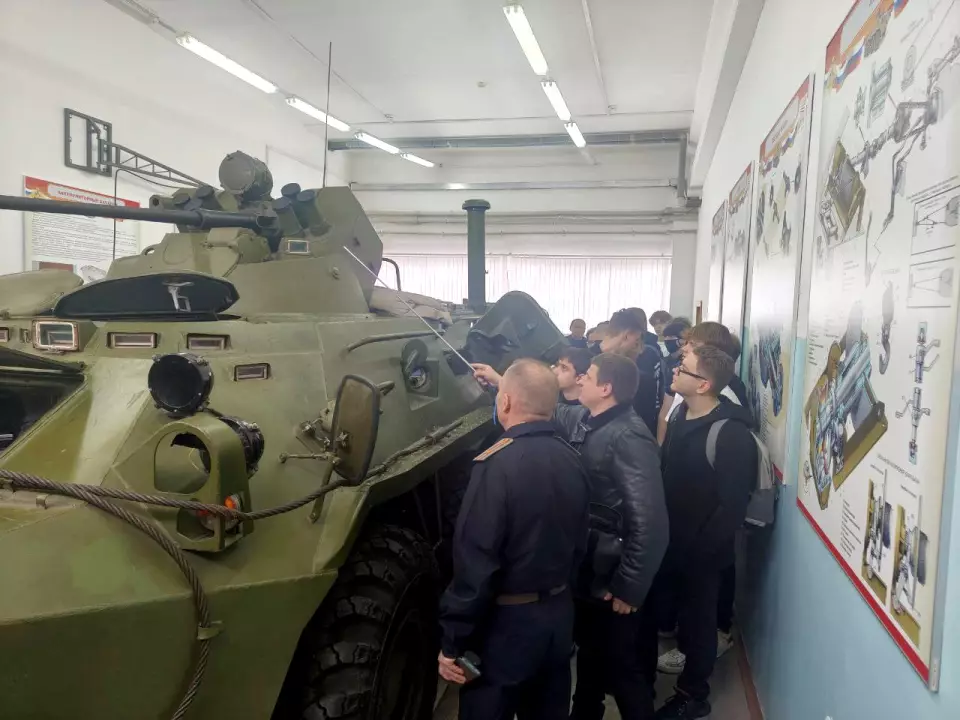 Ребята смогли примерить бронежилет, каску и даже подержать автомат, что позволило им лучше понять условия службы и трудности, с которыми сталкиваются военнослужащие. Специально для юных гостей была организована выставка современных образцов стрелкового оружия. Парни не упустили возможность под присмотром офицеров подержать в руках современное боевое оружие. Завершилась экскурсия знакомством с бронетранспортером БТР-80А.