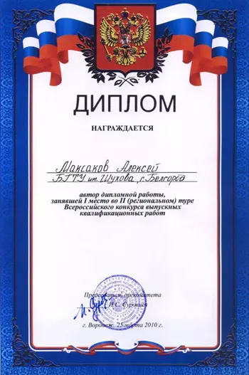 Дипломные квалификационные работы выпускников 2007 г., представленные на региональном конкурсе, А. Бухало и В. Широкого заняли 1-е места в своих категориях, а на Всероссийском конкурсе 2-е места.