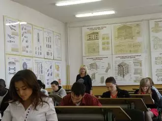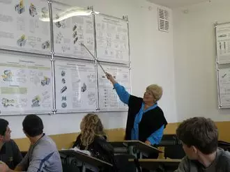 Здесь проводятся занятия по инженерной графике у студентов всех специальностей. На стенах кабинета представлены систематизированные знания и пространственные изображения, для помощи студенту в понимании предмета.