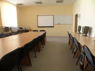 Здесь проводятся занятия по начертательной геометрии и инженерной графики у студентов технических специальностей. Студенты работают на специальных чертежных столах и всегда могут воспользоваться информативными плакатами, удобно расположенными на стенах учебного зала.