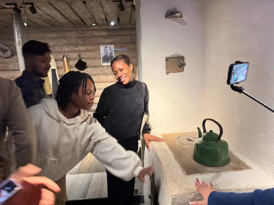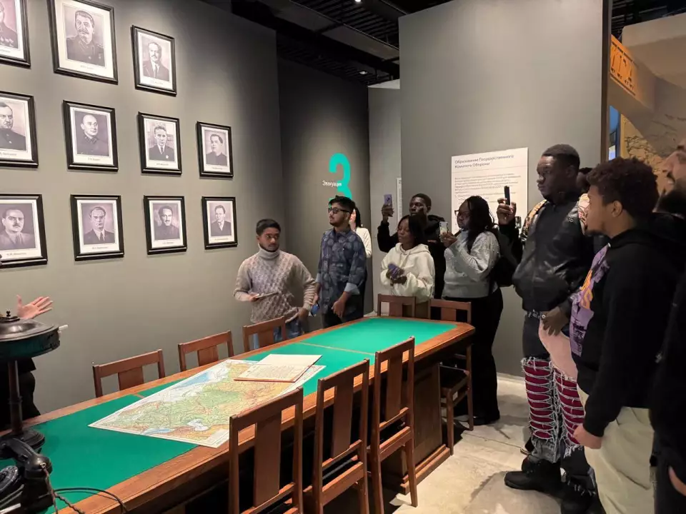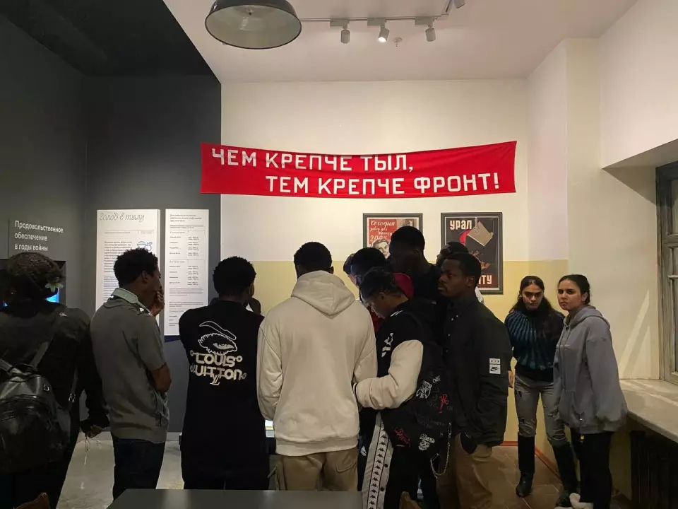В музее «Битва за оружие Великой Победы» студенты погрузились в историю тыла: увидели вагон-теплушку для эвакуации заводов, узнали о работе конструкторов и о том, как женщины и подростки сутками собирали технику для фронта.