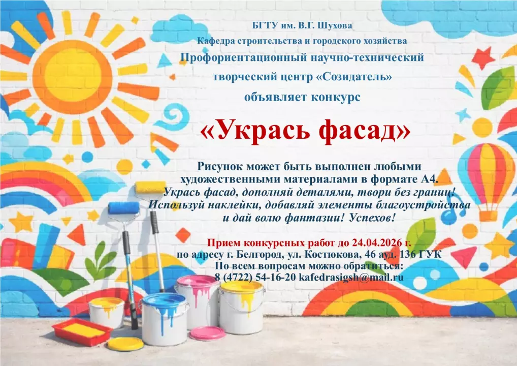 Профориентационный научно-технический творческий центр «Созидатель» кафедры строительства и городского хозяйства БГТУ им. В.Г. Шухова объявляет конкурс «Укрась фасад»