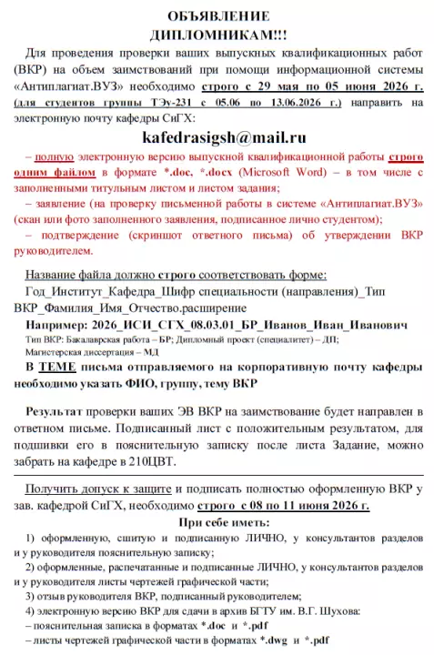 Для студентов, обучающихся по дистанционной форме, допускается Заявление на утверждение темы диплома и файлы с изображениями будущего диплома присылать на почту кафедры (см. разел Контактные данные)
