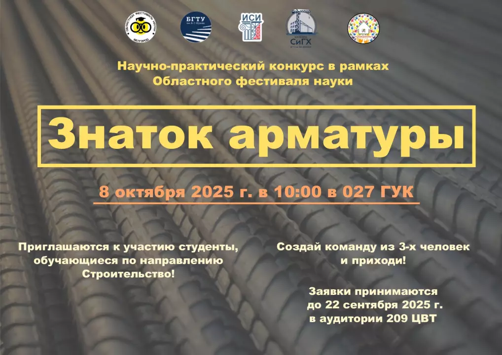 Профориентационный научно-технического творческого центра «Созидатель» кафедры СиГХ приглашает принять участие в научно-практическом конкурсе "Знаток арматуры"