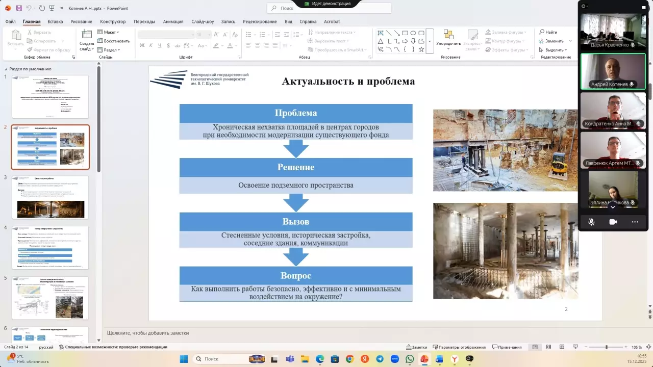 15 декабря 2025 состоялись предварительные защиты выпускных квалификационных работ студентов магистратуры, обучающихся по профилям «Техническая эксплуатация и реконструкция объектов жилищно-коммунального хозяйства», «Технологии, организация и информационное моделирование строительства».
