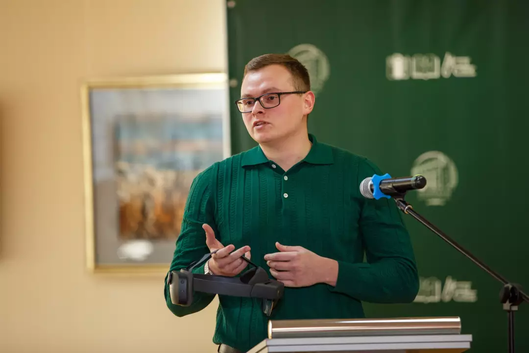 Андрей Левшин, председатель студенческого научного общества кафедры строительства и городского хозяйства «Шаг в науку», представил доклад «Цифровая трансформация строительной отрасли», в котором рассказал о возможностях виртуальной и дополненной реальности в технологии возведения и технической эксплуатации объектов строительства.
