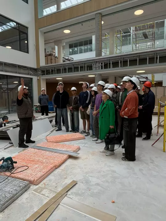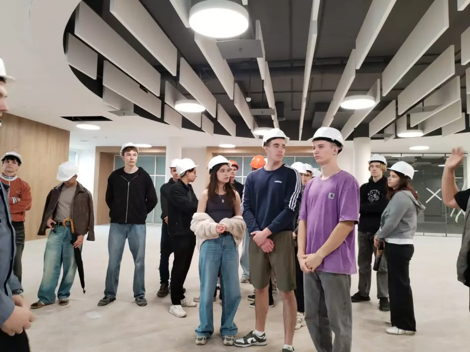 Студенты во время экскурсии познакомились с результатами проведенных работ в здании и на улице. Первокурсникам показали спортивный зал, бассейн, соляную комнату, актовый зал, зелёные классы, и несколько современных классов. Особенное внимание вызвал трехэтажный атриум с общественными зонами. Ребятам рассказали, как современные технологии и комплекс защиты внедряются в проект, чтобы создать максимально комфортную и безопасную среду для обучения. Сейчас в школе проводится внутренние отделочные работы, и уже в сентябре этого года учебное заведение откроет свои двери для 1500 учеников.