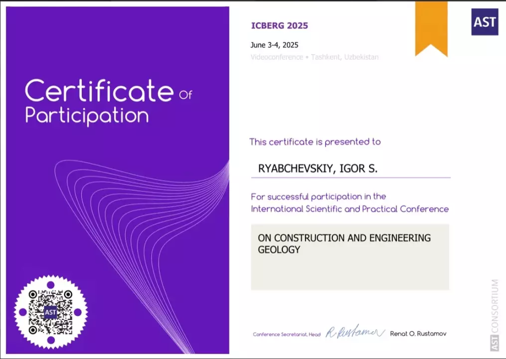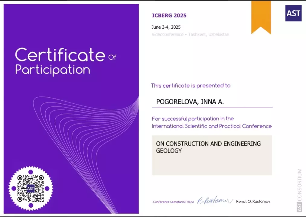 Участие в Международной научной-практической конференции по строительству и инженерной геологии (ICBERG 2025, 3-4 июня 2025 г.)