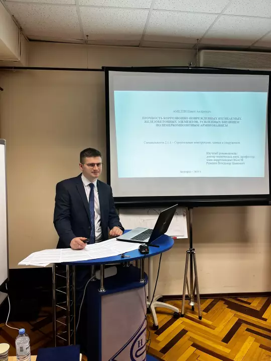 Сегодня 30.06.2025 г. в диссертационном совете 39.1.001.01 при НИИСФ РААСН состоялась успешная защита кандидатской диссертации старшего преподавателя кафедры строительства и городского хозяйства БГТУ им. В.Г. Шухова, Амелина Павла Андреевича.
