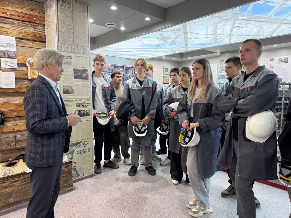 Студенты посетили музей, который находится на территории завода «Белэнергомаш-БЗЭМ». Познакомились с историей создания завода, его построили в 1939 году как котлостроительный завод по приказу Народного комиссариата электростанций СССР. Сначала производили паровые водогазотрубные котлы. После войны стали выпускать металлические кровати, металлоконструкции и трубы.