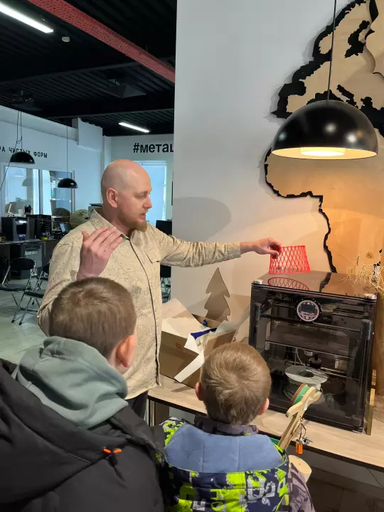 Экскурсию юные гости начали с центра «Метаморфоза». Директор центра Виктор Борисович Бабаев провел для них серию мастер-классов, познакомив с передовыми технологиями. Ребята с большим интересом наблюдали за процессом 3D-печати, увидев, как из пластиковой нити рождаются объемные фигуры.