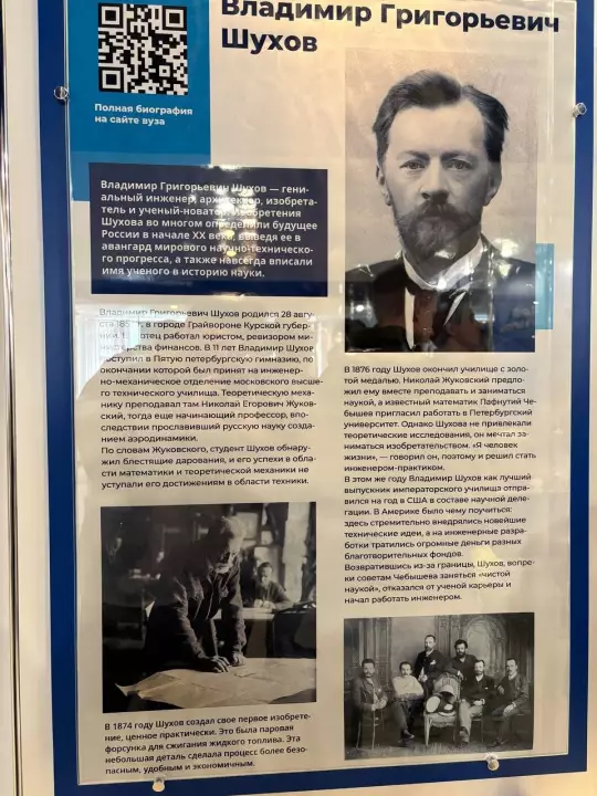 Студенты познакомились с историей университета, а также с основными изобретениями Владимира Григорьевича Шухова и интересными фактами из его жизни.