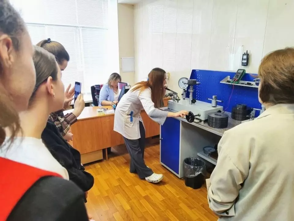 Экскурсию по испытательным и измерительным лабораториям провела наша выпускница, ныне ведущий инженер по качеству ФБУ «Белгородский ЦСМ» Рогачева Анна Петровна, в ходе которой ребята смогли узнать о проведении поверки средств измерений различного назначения. Также наши студенты познакомились с деятельностью ФБУ «Белгородский ЦСМ».