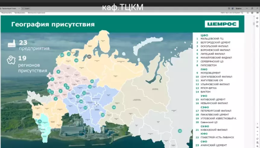 На кафедре Технологии цемента и композиционных материалов в очно-дистанционном формате состоялась встреча студентов и магистрантов с представителями холдинга ЦЕМРОС, который является стратегическим па